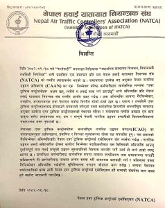 अन्यथा पेशागत मर्यादामाथिको धावा ठानी नेपाल एयर ट्राफिक कन्ट्रोलर्स एसोसिएसन हदै सम्मको संघर्षमा जान बाध्य हुने व्यहोरा जानकारी गराएको छ ।