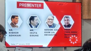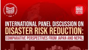 काठमाडौं/ माघ २७, २०८२ (जनवरी ११, २०२६) — विपद् जोखिम न्यूनीकरण (DRR): जापान र नेपालको तुलनात्मक दृष्टिकोण विषयक अन्तर्राष्ट्रिय प्यानल छलफल आज आईसीएमएस, समर्पण एकेडेमी, धुम्बाराहीस्थित कलेज अडिटोरियममा सफलतापूर्वक सम्पन्न भएको छ।