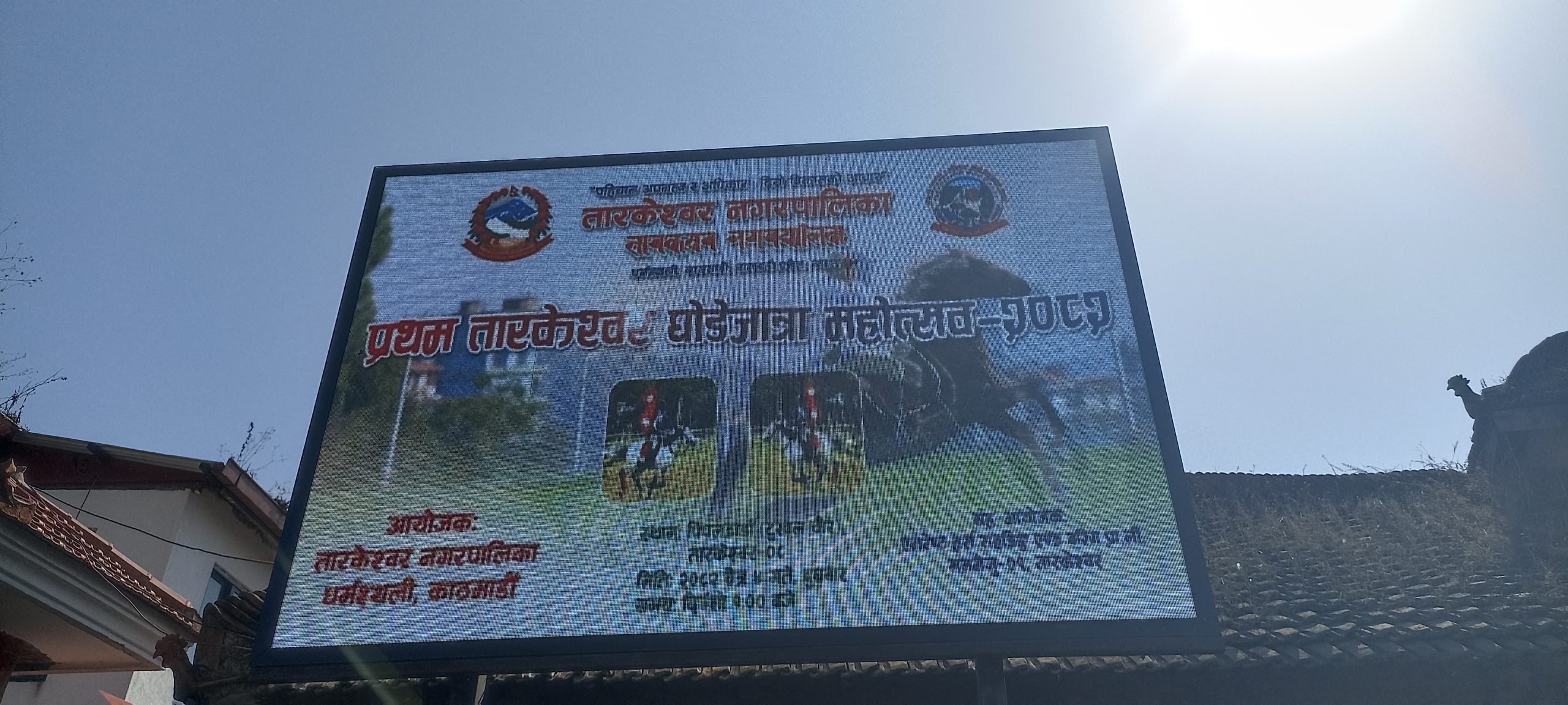 तारकेश्वर नगरपालिकाको आयोजना तथा एभरेष्ट हर्स राइडिङ एण्ड बग्गि प्रालिको सहकार्यमा घोडेजात्रा पर्वको अवसर पारेर चैत ४ गते आज दिउसाे १ बजे देखि तारकेश्वर नगरपालिका–८ पिपलडाँडा टुसालचौरमा पहिलोपटक घोडेजात्रा महोत्सव हुन लागेको हो ।