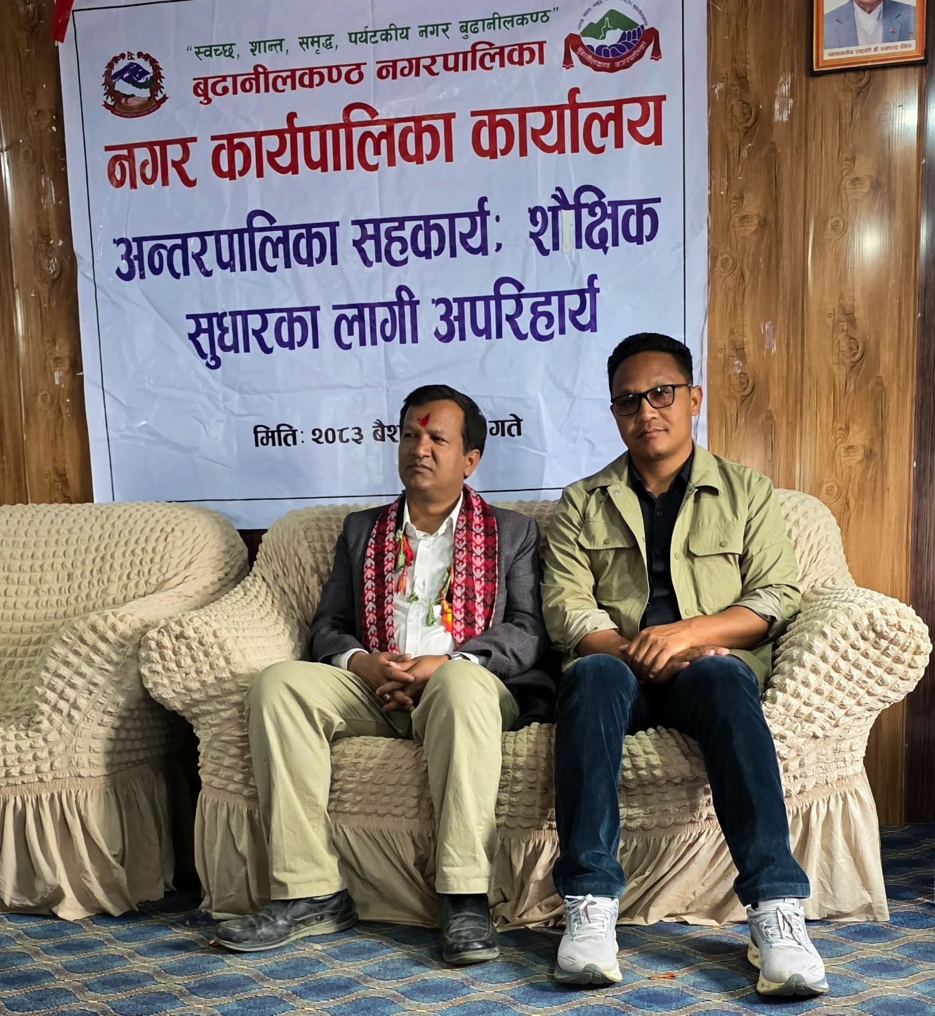 अन्तरपालिका सहकार्य कार्यक्रम अन्तरगत ४ ओटै पालिकाको मुकाममा प्रधानाध्यापकहरुसँग शैक्षिक अन्तरक्रिया कार्यक्रम सम्पन्न गरी शैक्षिक सत्र २०८३ लाई शैक्षिक सुधार, विकास र उन्नयनको बर्षका रुपमा कार्यन्वयन गर्न सामूहिक प्रतिबद्धता गरिएको छ । विद्यालय खुल्ने दिन, पठनपाठन हुने दिन वृद्धि गर्दै परीक्षा र मूल्यांकनलाई शिक्षण सिकाइको सुधारका माद्यमका रुपमा उपयोग गर्न यसलाई मर्यादित र व्यवस्थित बनाउन सबै सरोकारवालाहरुले ऐक्यबद्धता जाहेर गरेका छन् । अन्तरक्रिया कार्यक्रममा बुढानीलकण्ठ नगरपालिकाका अधिकृत सुरेश चौलागाई र उपसचिब ललित बिक्रम सिंहबाट बुढानीलकण्ठ नगरपालिका असल शैक्षिक अभ्यासहरुको प्रस्तुतीकरण गरिएको थियो।